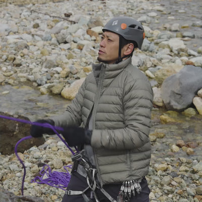 インナー・アウターどちらも対応できる、3,000m級の山行で通年利用しやすいダウン量の登山用ジャケットです。肌寒い幕営地やクライミングのビレイなどに適した、脱ぎ着のしやすい軽量ダウンです。